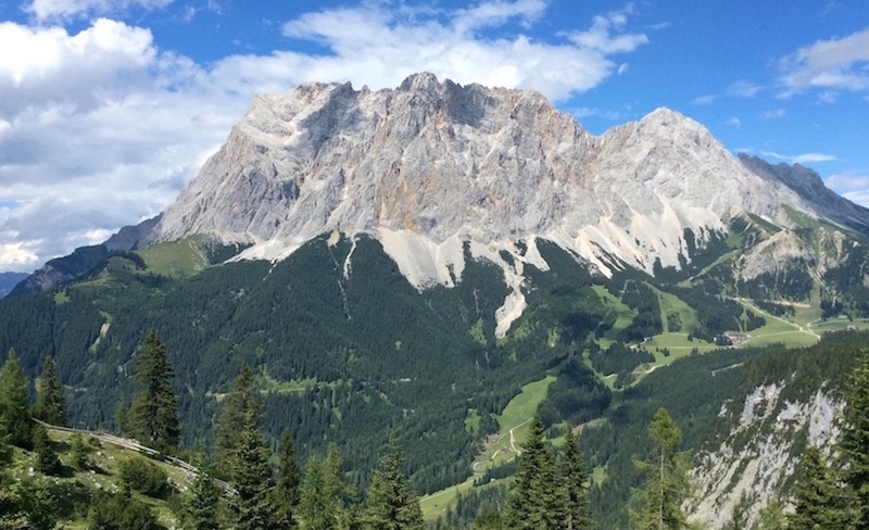 標高2962m、ドイツ最高峰の頂上まで山頂ロープウェイで行ける。山頂には展望台とレストランがあるので、食事を楽しみながらパノラマを楽しめる。ツクーシュピツエの登山拠点は、ガルミッシュ・パルテンキルヒェン。冬場はスキー客のリゾート地、夏場は山岳地帯を歩くハイカーで賑わっている。ミュンヘンから電車で1時間半の距離なので日帰りも可能。